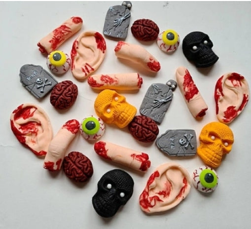 12 Edible Halloween cake/cupcakes toppers, fondant icing decorations