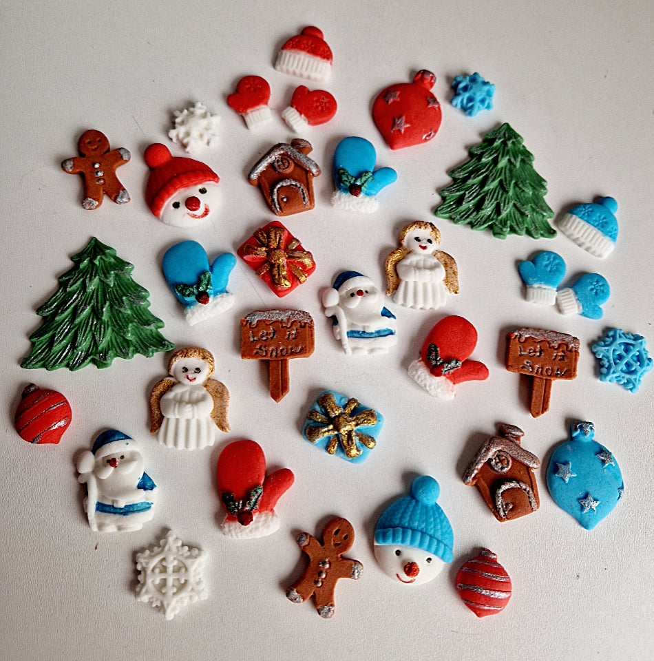 20 Edible mini Christmas cake/cupcake toppers,fondant icing decorations
