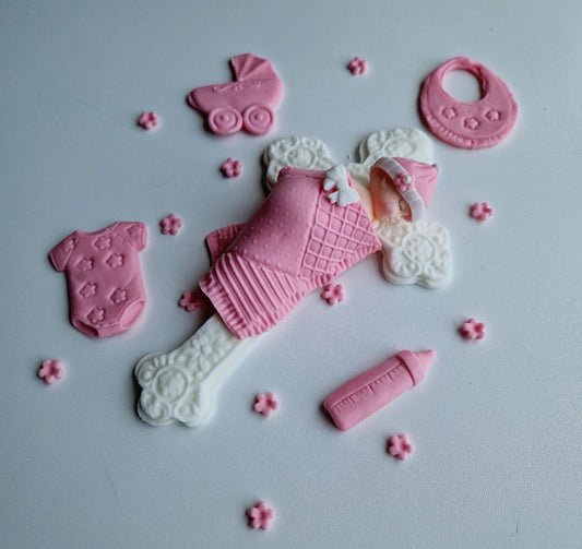 Edible baby teddy bear cake topper,fondant baptism icing decoration