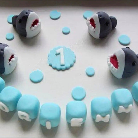 Eetbare haaien taarttopper, handgemaakte fondant decoratie